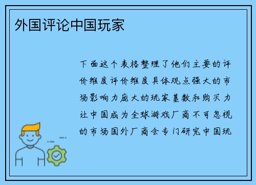 外国评论中国玩家